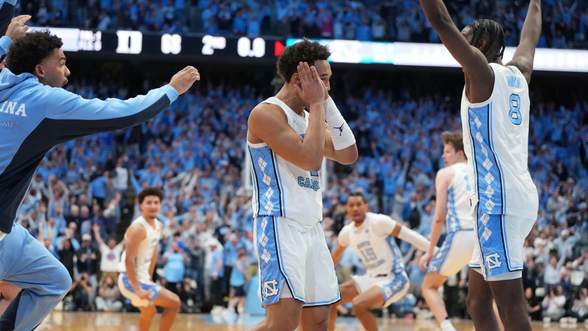Fans storm court twice after Seth Trimble's heroic 3 for UNC vs. Duke
